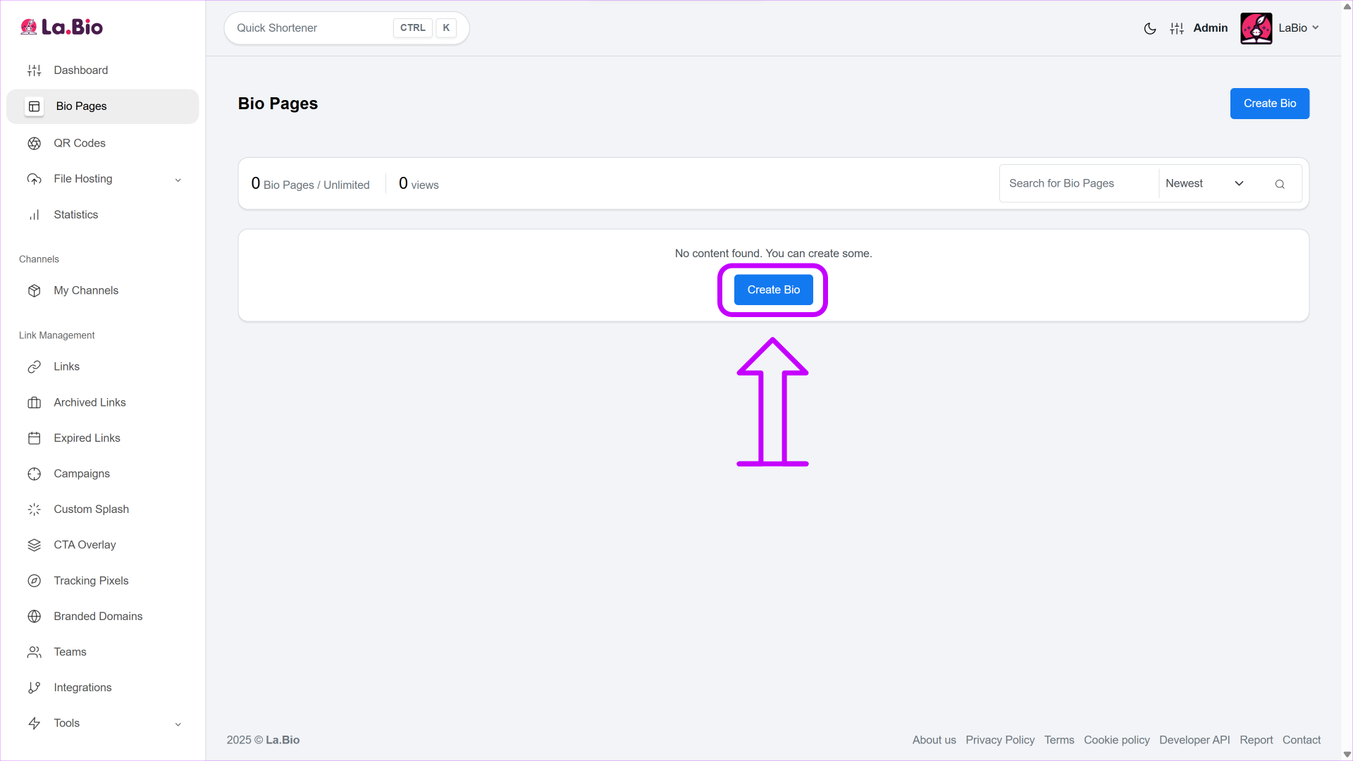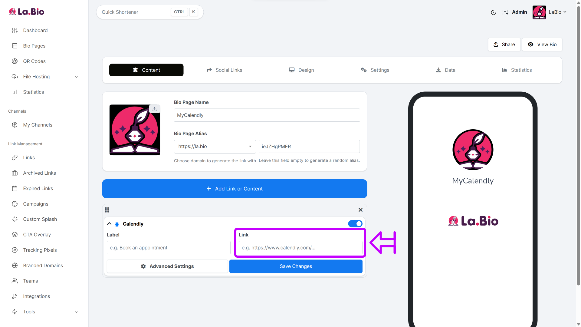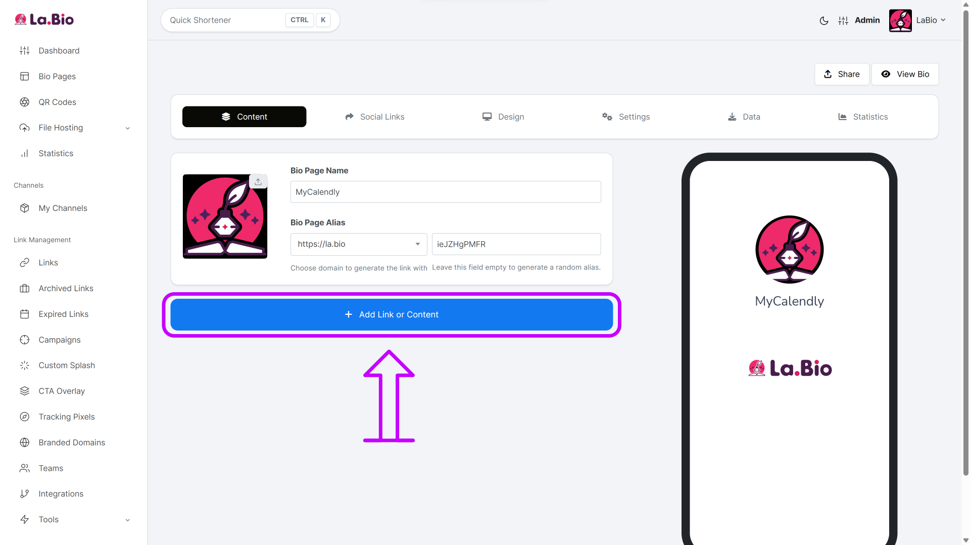 Access Your Page: Go to your Bio Page editor on your La.Bio dashboard.