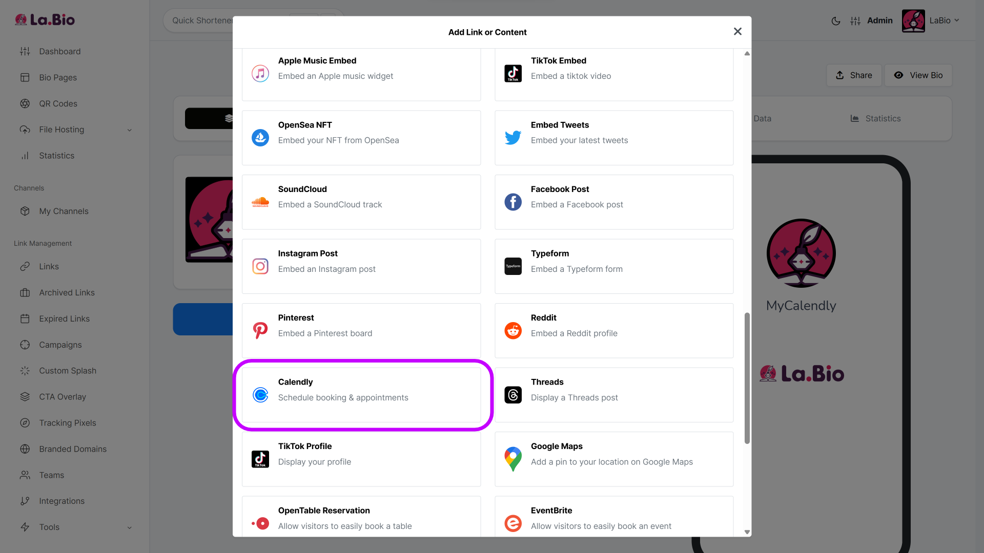 This transforms your simple profile into a powerful booking engine using the calendly widget free of charge on La.Bio.