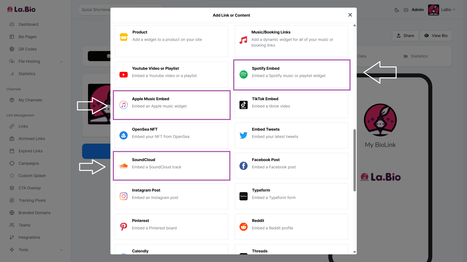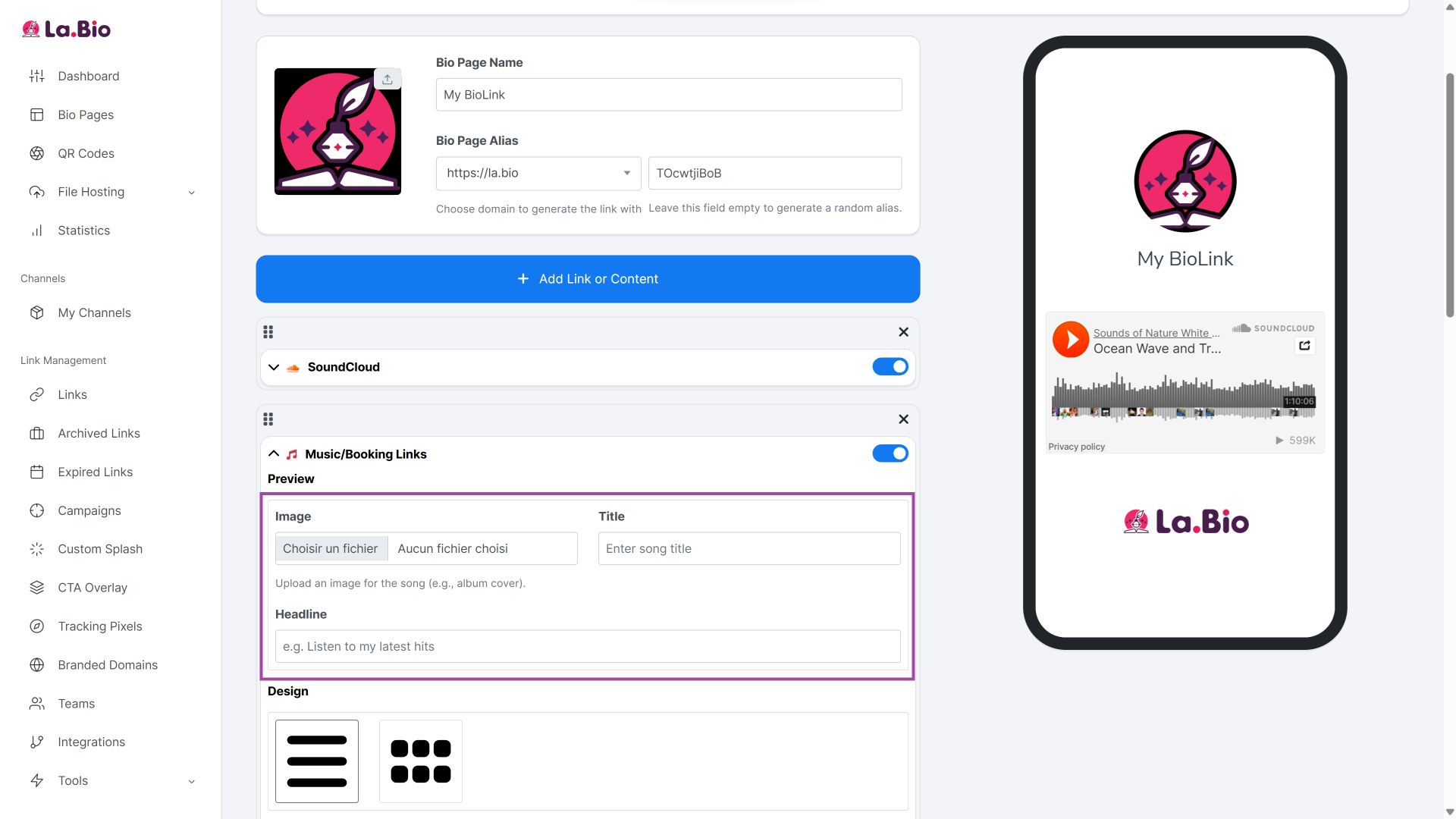 This is where [La.Bio] changes the game. We believe independent artists shouldn't have to pay monthly subscriptions just to share their art. Unlike other platforms, [La.Bio] offers free music smart links and unlimited music embeds, giving you the same professional tools as major label artists at zero cost.