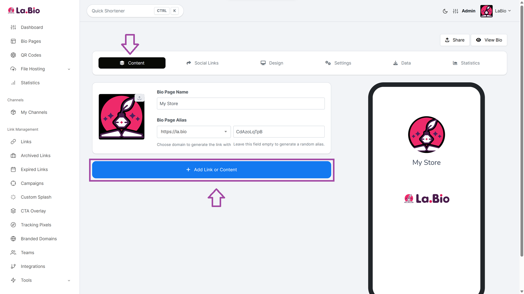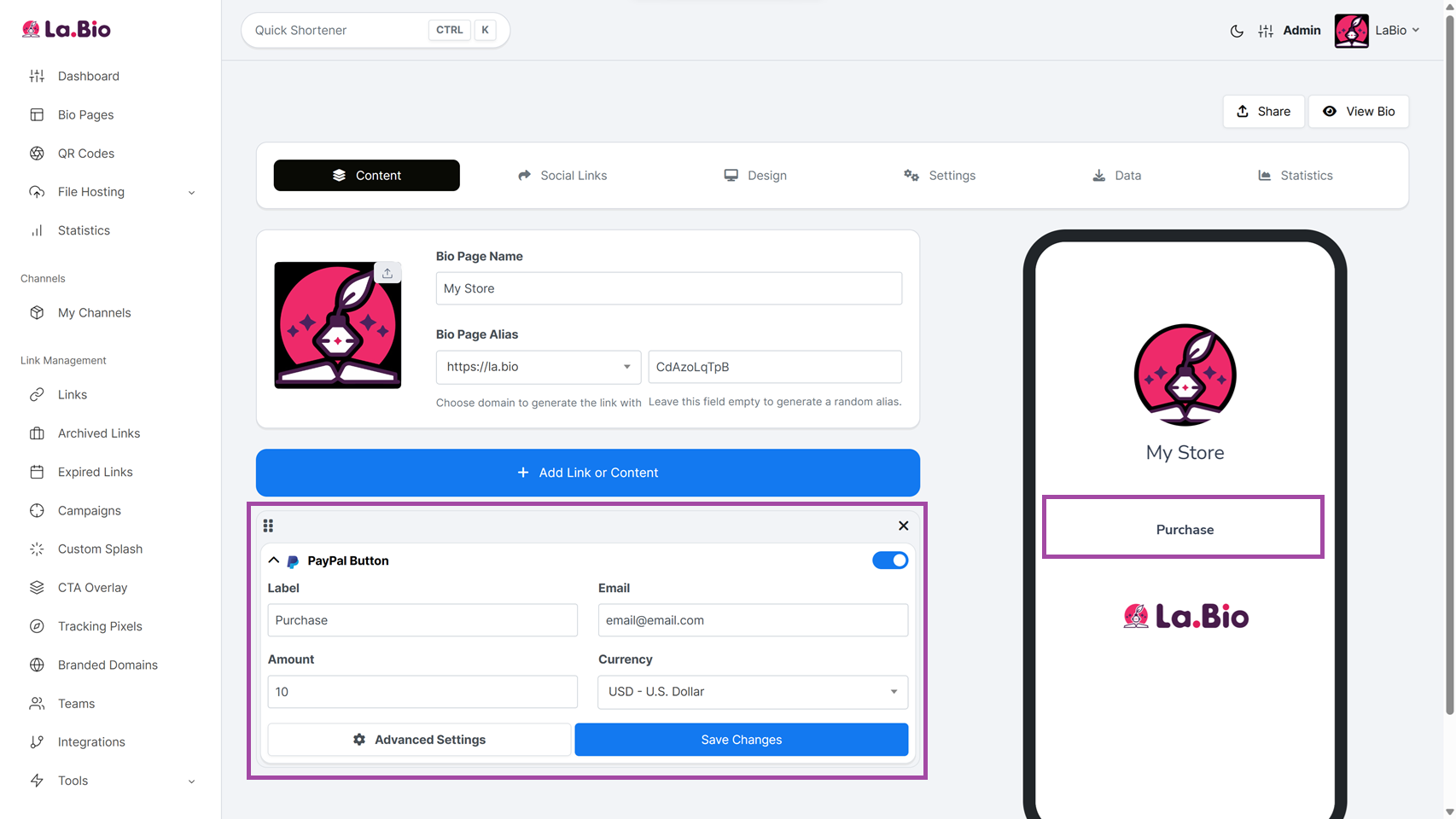 Choose a custom URL that fits your brand (e.g., la.bio/my-shop or la.bio/your-name). This will be the public link you share on your social media profiles.