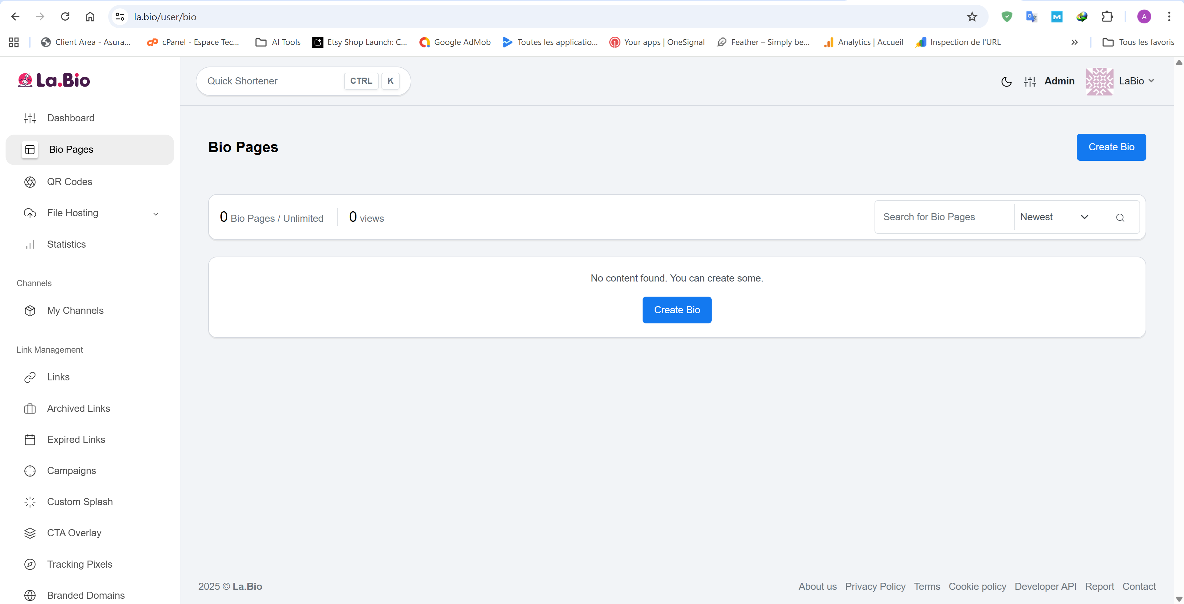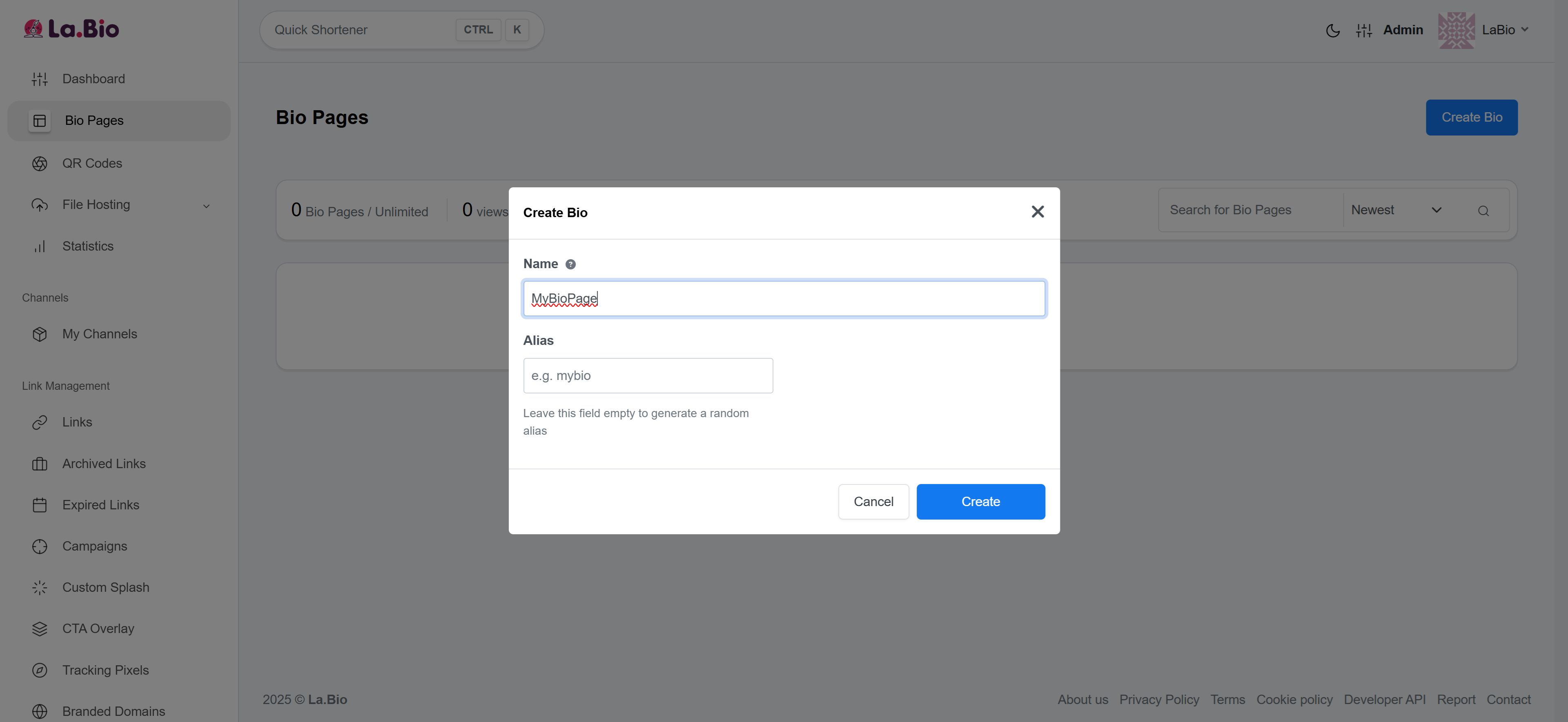 Go to the la.bio/user/bio page.