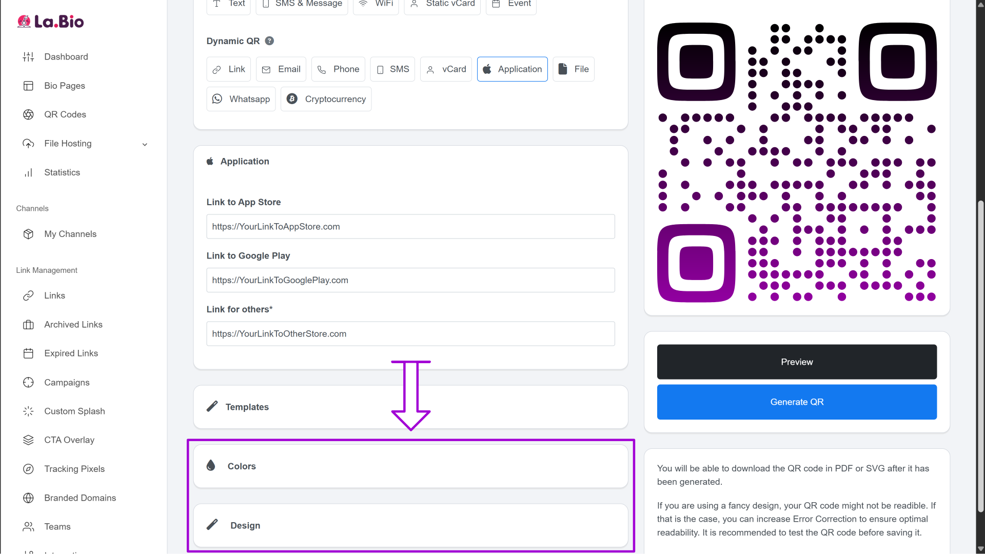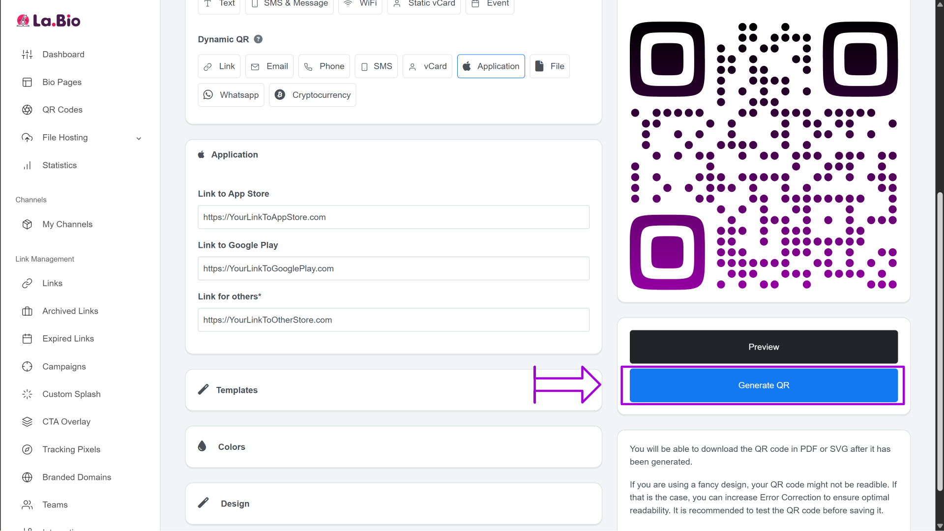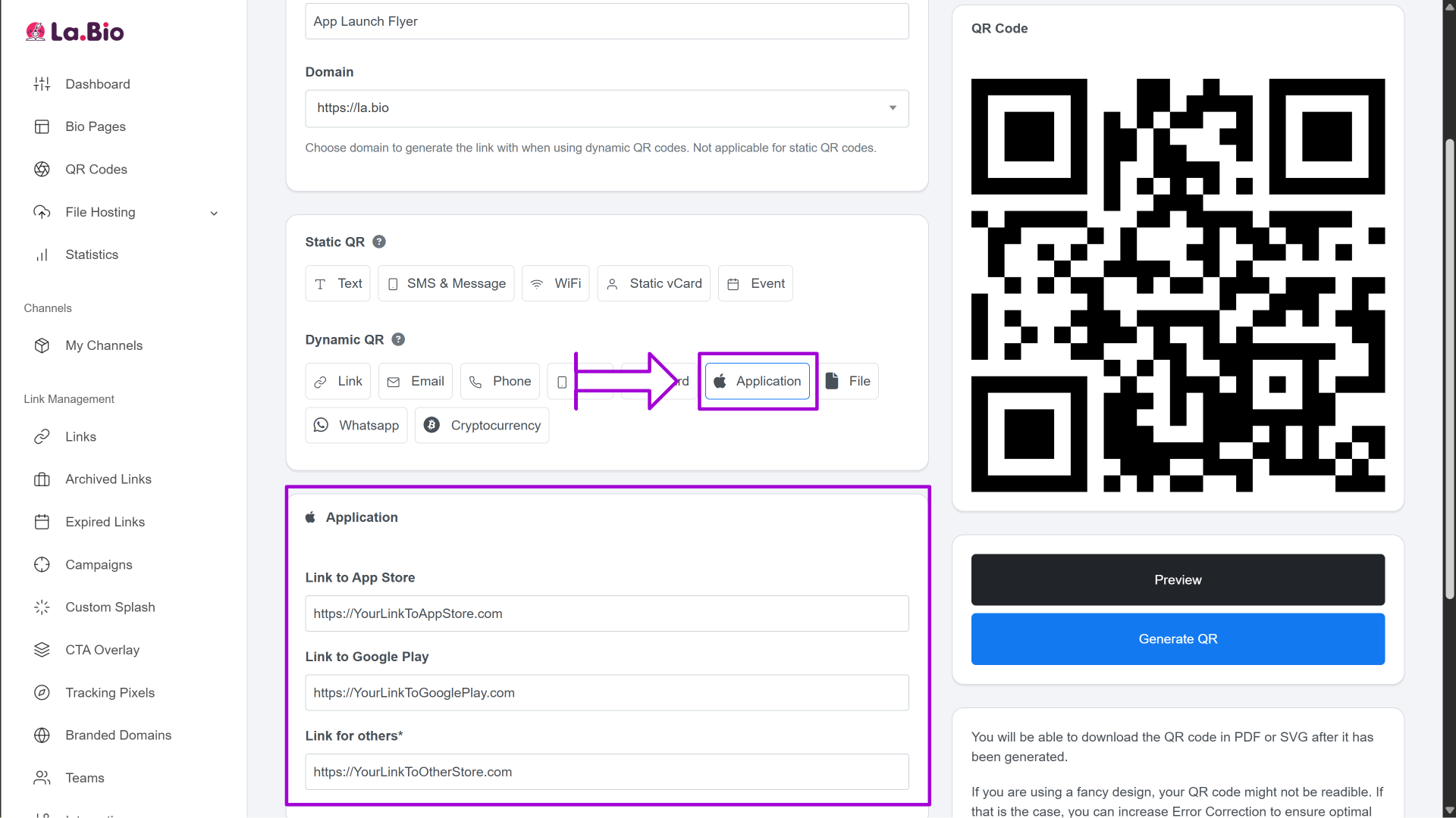 Follow this simple guide to generate your universal qr code for app download using the La.Bio platform.